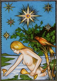 2. Funnily enough, the traditional Star card has a little red bird (scarlet ibis) in the background, who is actually given extra focus on this card in some other decks. It might mean heavenly influence or inspiration or wisdom, but I just think it's a cool coincidence :)