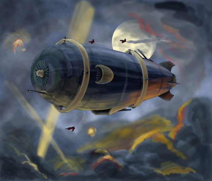 Well, zeppelin, but who's counting. Most of the finished work I've done are in the details that are hard to see at this size, whoops. ^^; Those clouds are gonna be... interesting... to do...
