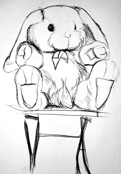 * Bunnie! Charcoal pencil sketch from still life. I'm still wondering why my art teacher had such a thing. ^^;