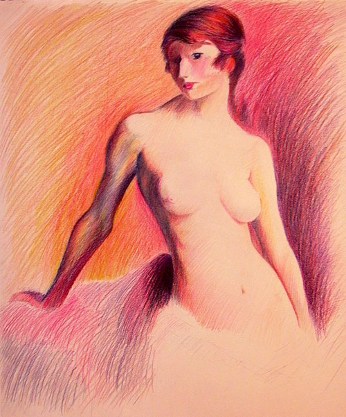 * Young Girl, by Robert Henri. Colored pencil from oil painting. Unfinished, but looking sorta nifty. =) Just wish I had darker pencils, and such... I left the Prismacolors at school.