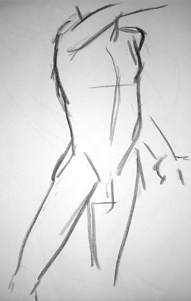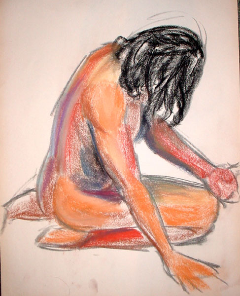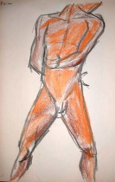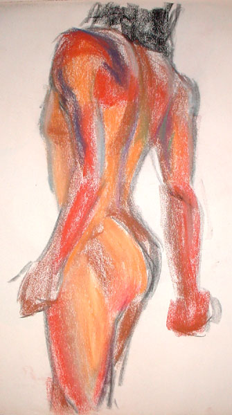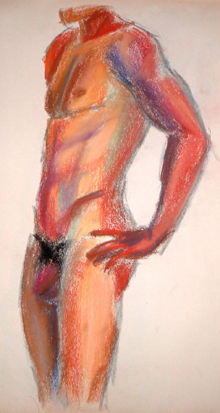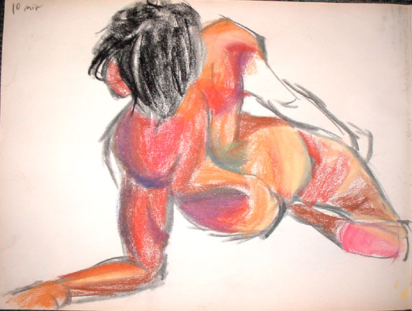 Figure drawing was tough this week - the model made really hard poses with lots of foreshortening, but more than that I'm not familiar enough with drawing the male body, I would guess. Once I started into color it got better though, because his skin tone matched my pastels better than the female models =)